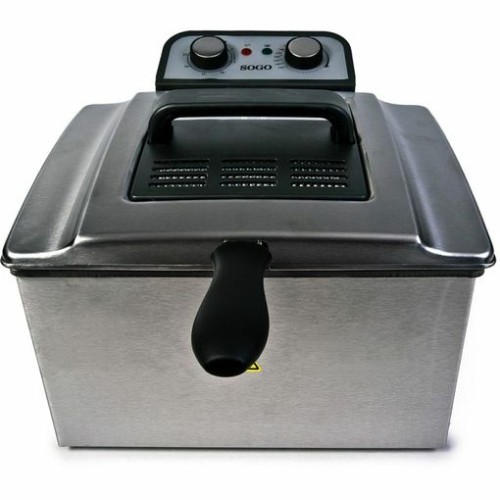 Freidora eléctrica polivalente de acero inoxidable con capacidad de 5 L.